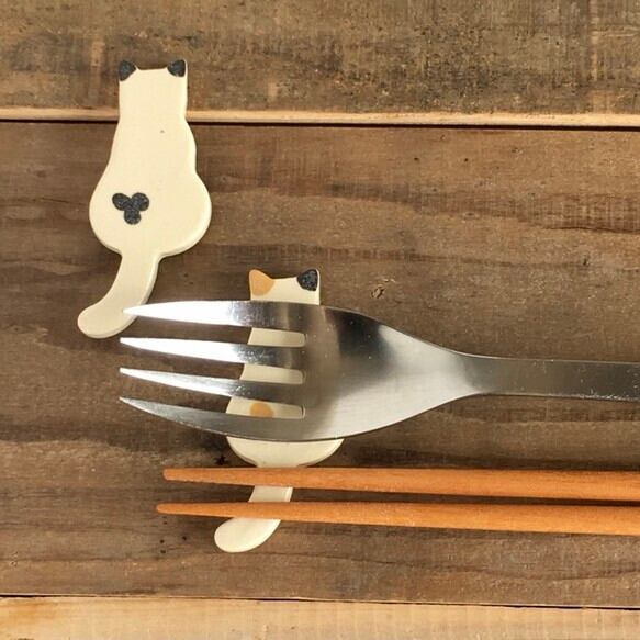 お箸とスプーンなど、2本並べて置けるカトラリーレストとして使えます。