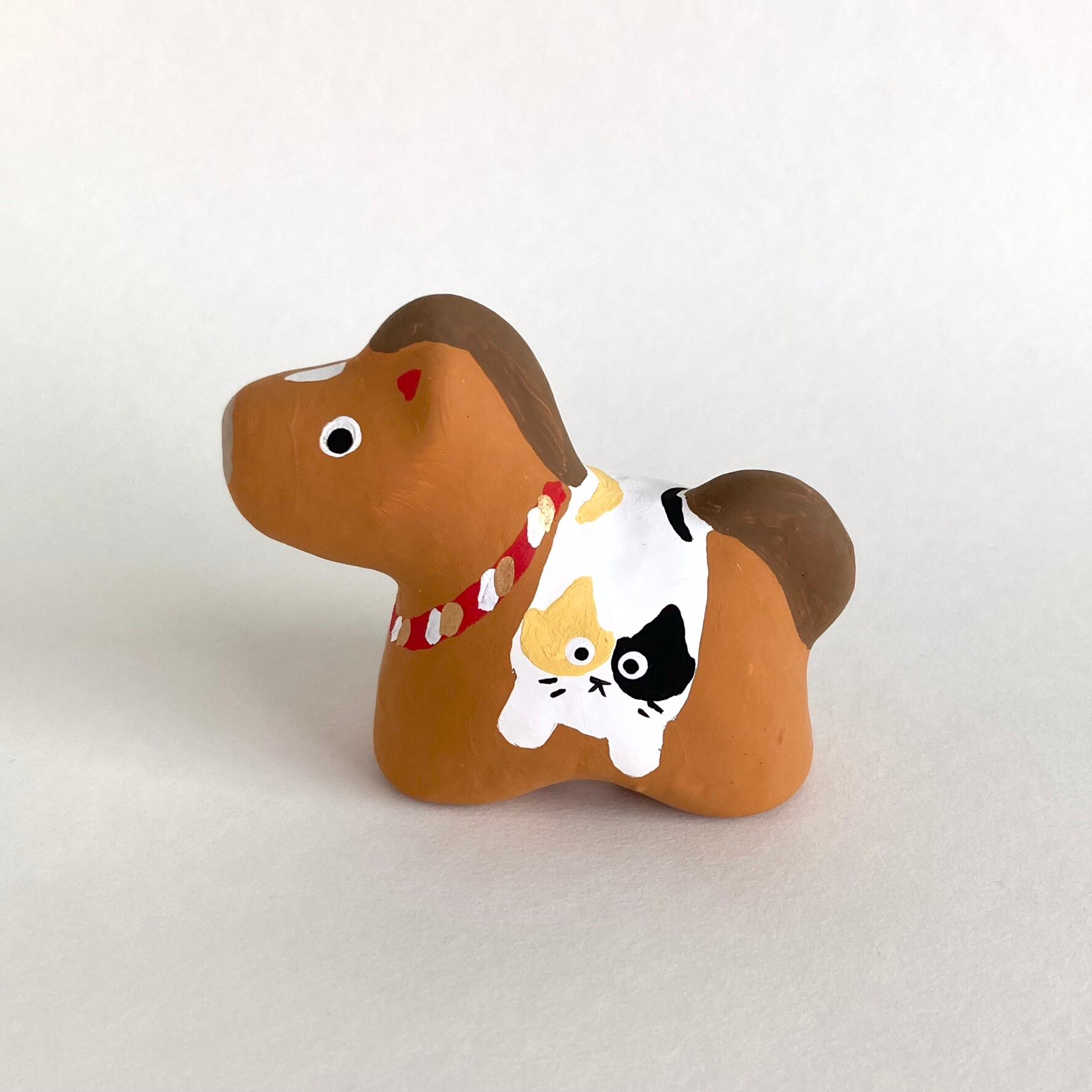のんびり気ままな猫がちょこんと乗った、愛嬌たっぷりの張り子です。