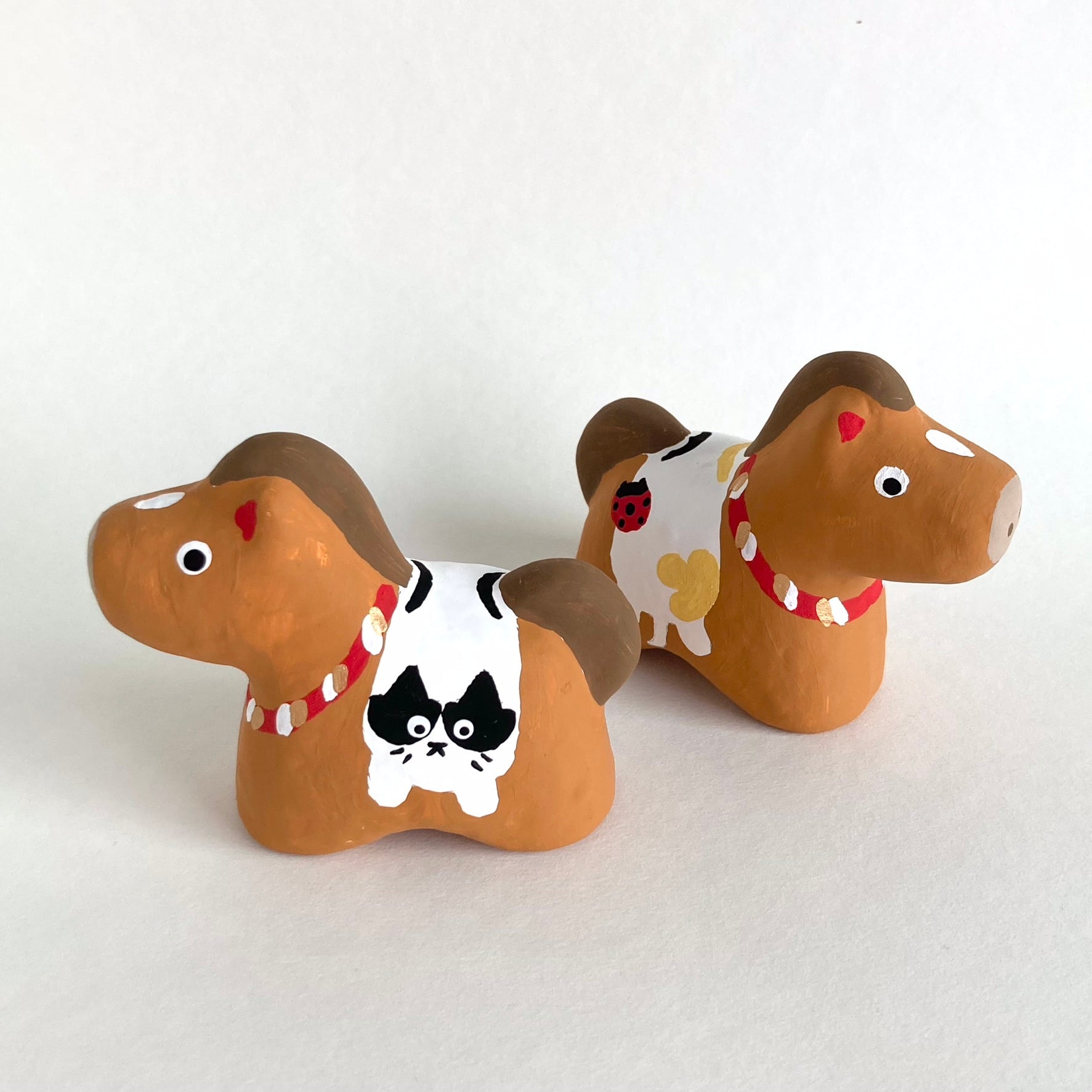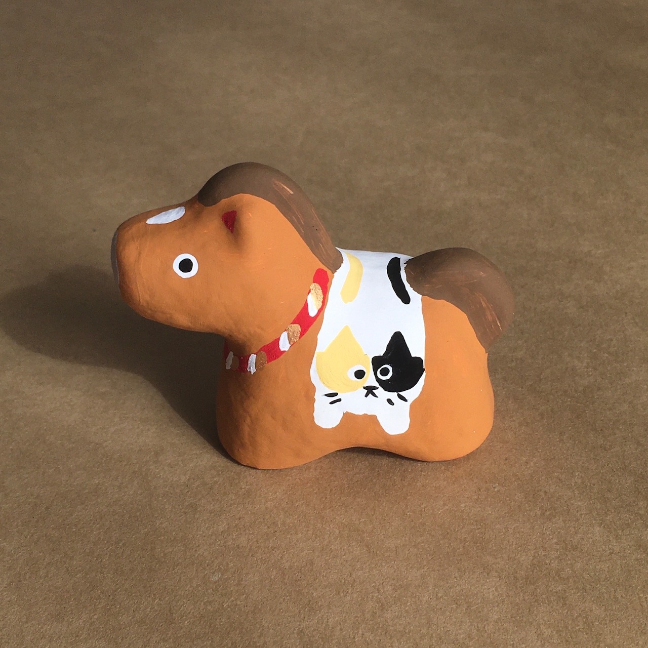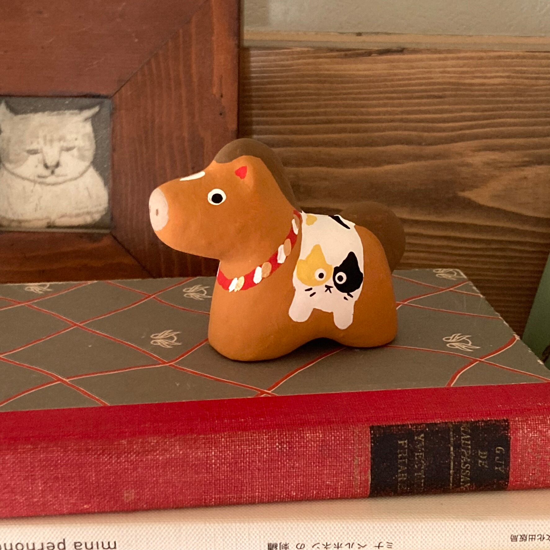 猫は、鞍(くら)をイメージして馬の背にちょこんと。