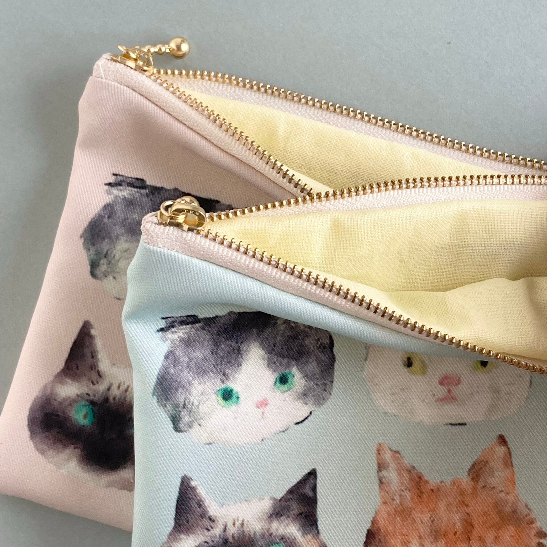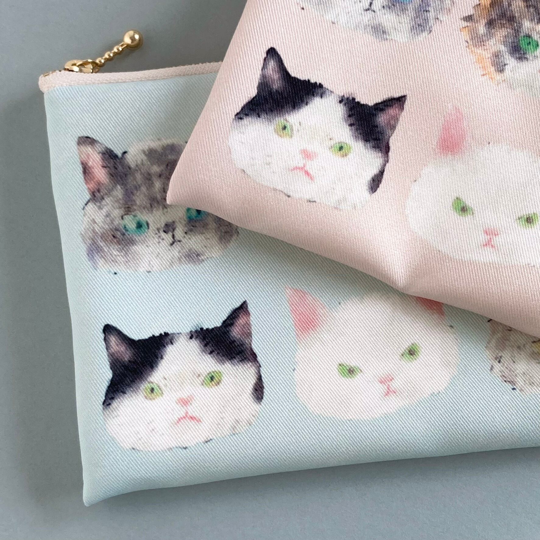 まるい目の猫たちが並ぶ人気シリーズの新作ポーチ。