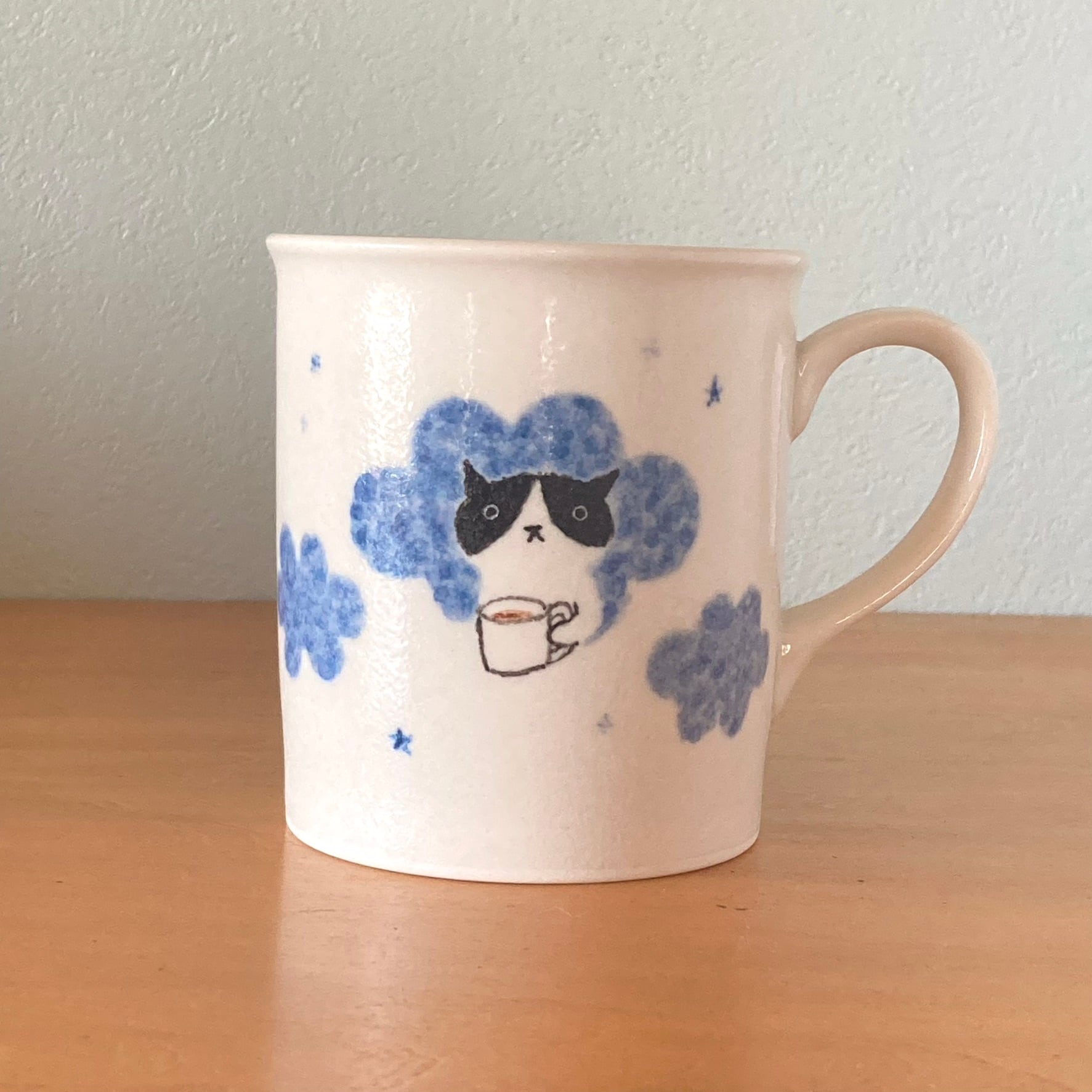 カップの背面には、小さな黒猫と赤いてんとう虫がちょこん。