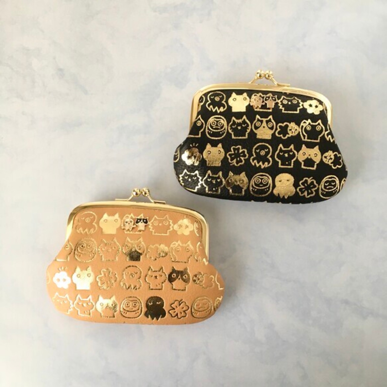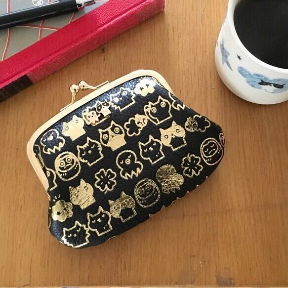 箔カスレ 楽しく使える本革がま口財布★えんぎモノグラムシリーズ