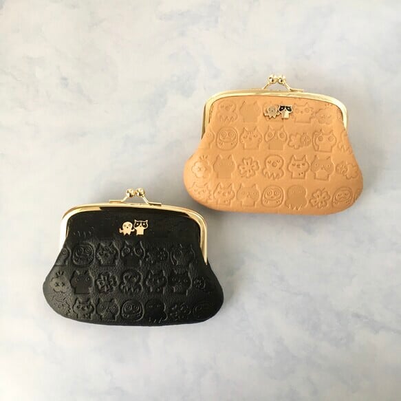 サンプル品販売 楽しく使える本革がま口財布★えんぎモノグラムシリーズ