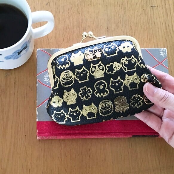 ブラック/表の猫とタコの金具なし。中のロゴ箔押なし。
