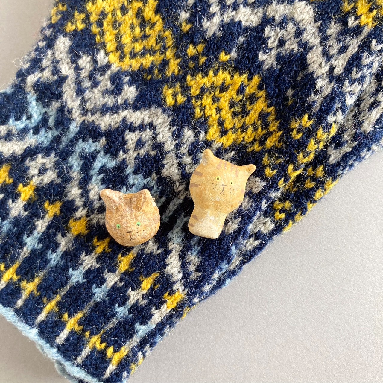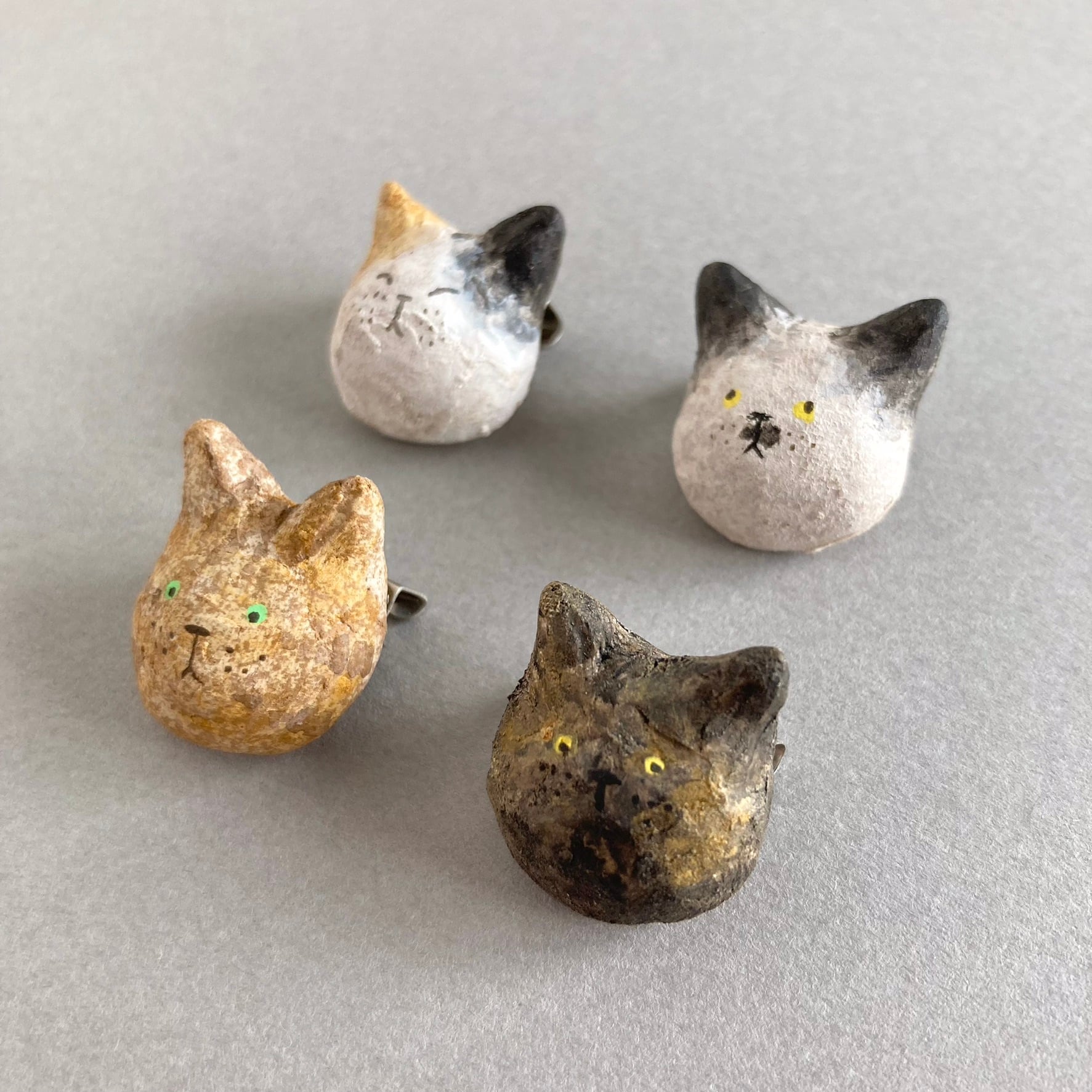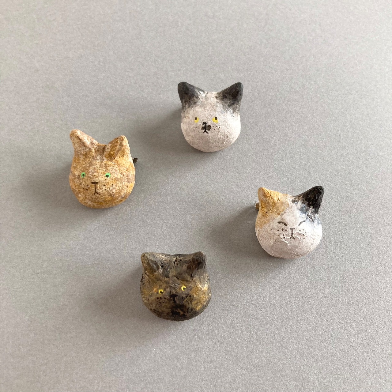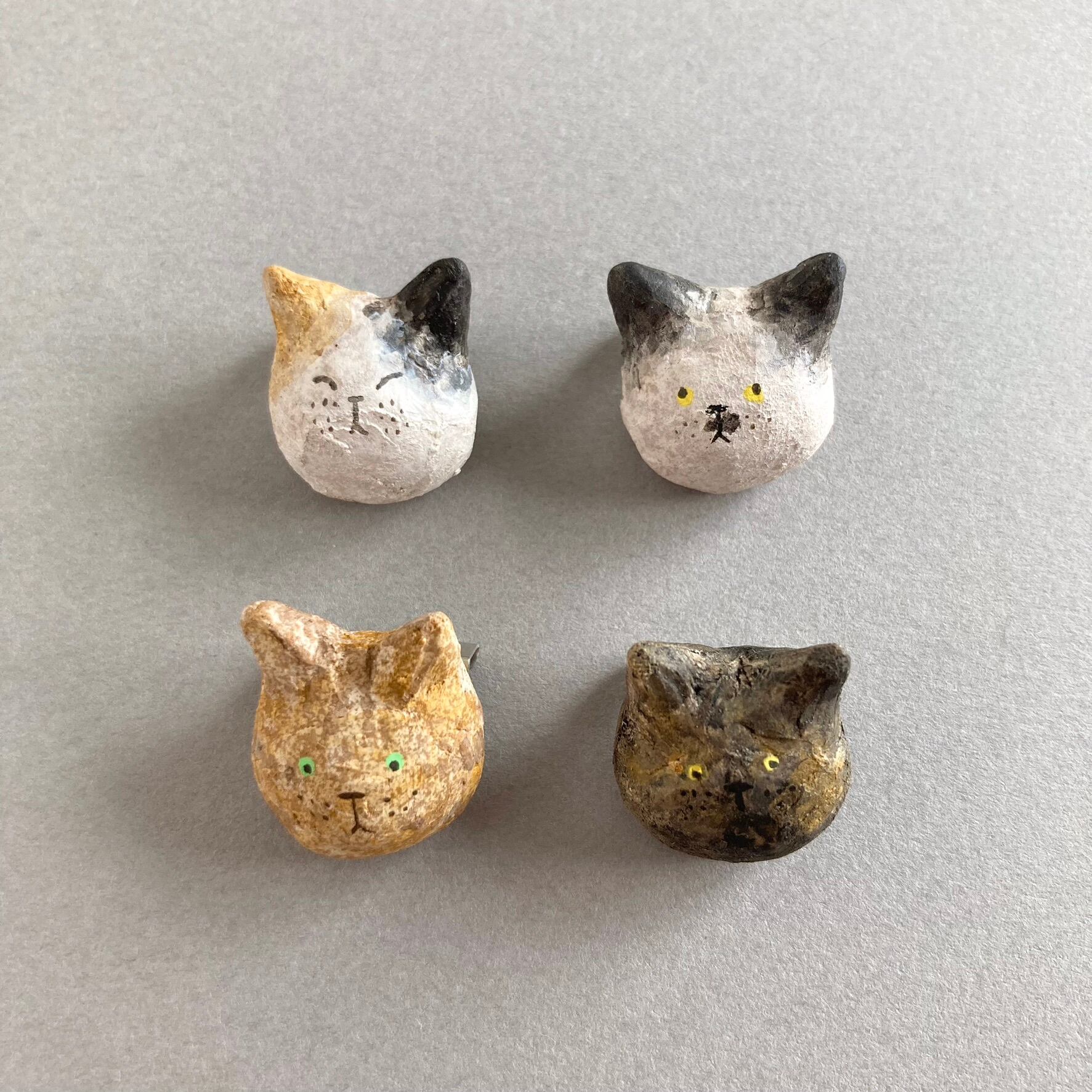 新作 ちいさな猫のブローチ(顔タイプ) 手描き・一点ものの陶器ブローチ