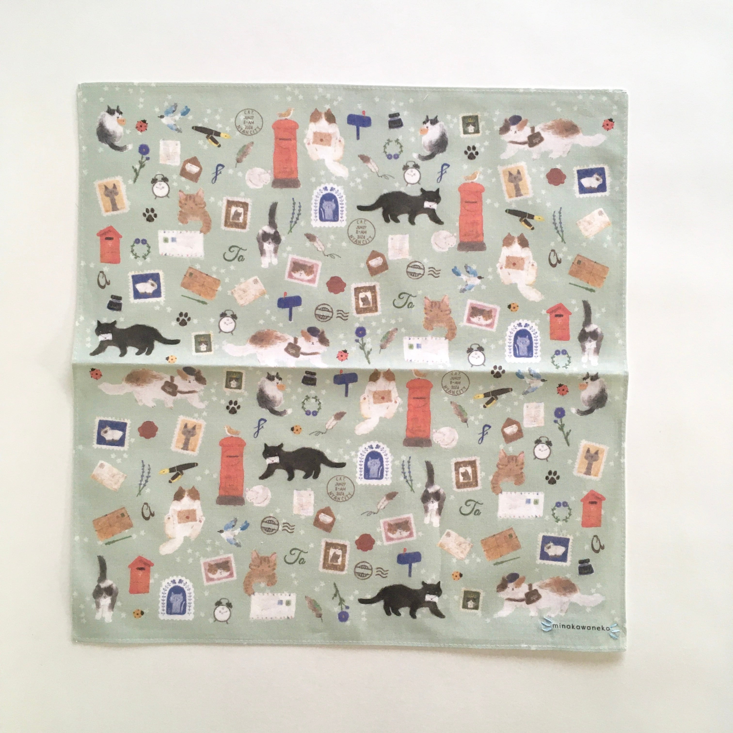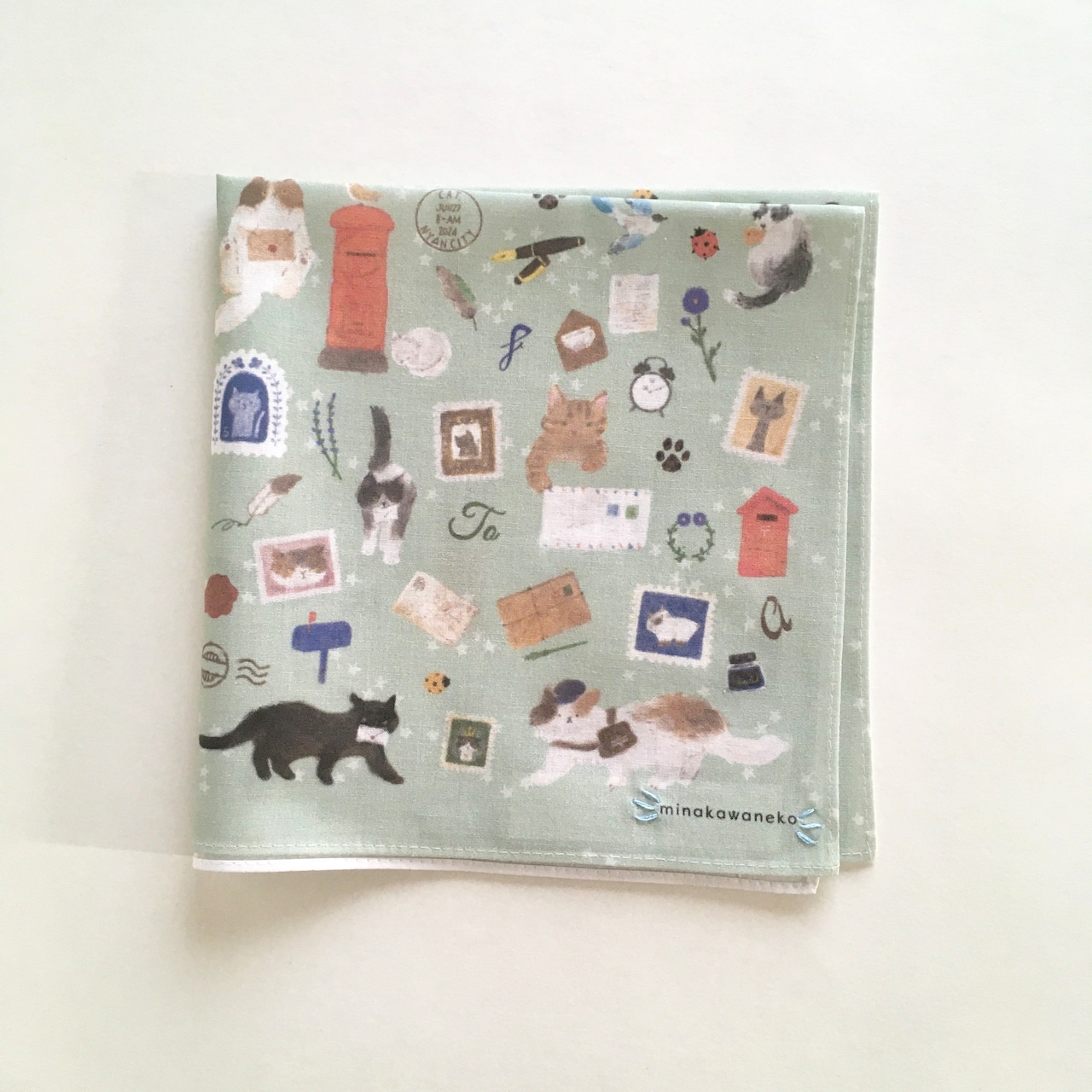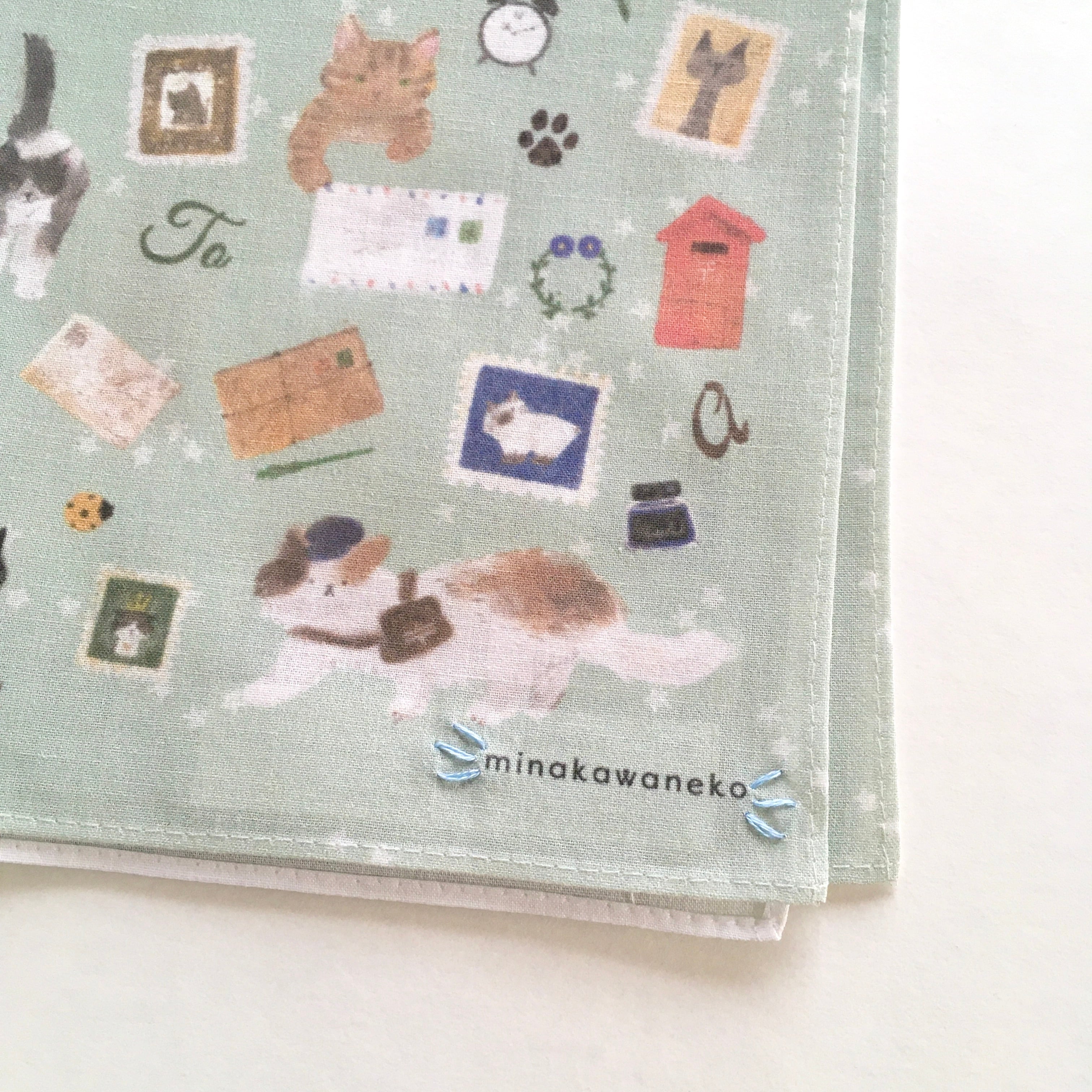 ハンカチ 猫 猫モチーフ 手刺繍 刺繍入りハンカチ